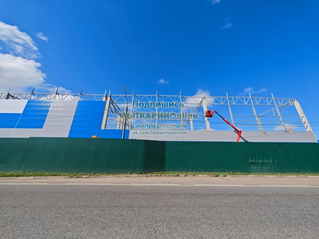 На въезде в город растёт новый склад вместо сгоревшего. После пожара они поставили забор ближе к дороге. Будем надеяться, что вернут его и вместо профнастила будем видеть красивое озеленение.