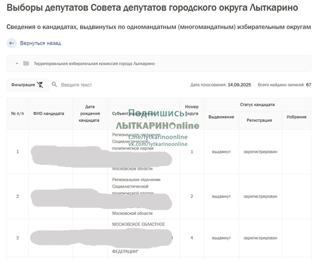 67 кандидатов зарегистрированы на выборы в Совет депутатов Лыткарино, которые пройдут в эти выходные.