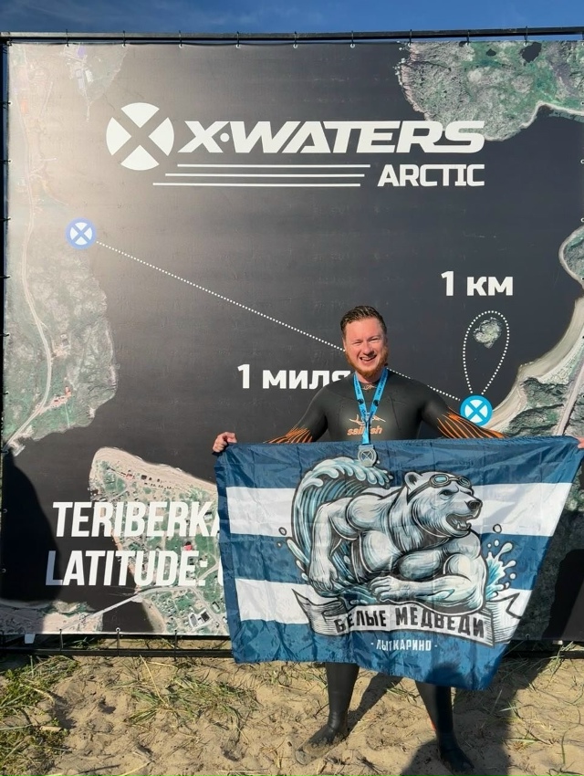 Участник сообщества «Белые Медведи» Лыткарино, Лев Фролов, успешно финишировал в заплыве 1 арктическая миля в Териберке!